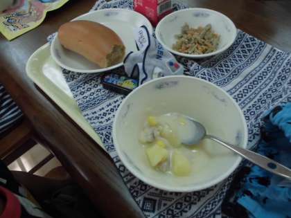 昨日と今日にかけて,2組はファンタジールームで給食を食べました。