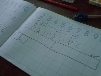 20までの数のたし算,ひき算の勉強中です。
