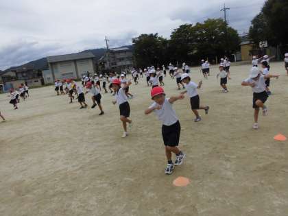 今日の体育も1・2年生合同で運動会の練習をしました。ダンスをしている姿がとてもかっこよかったです。