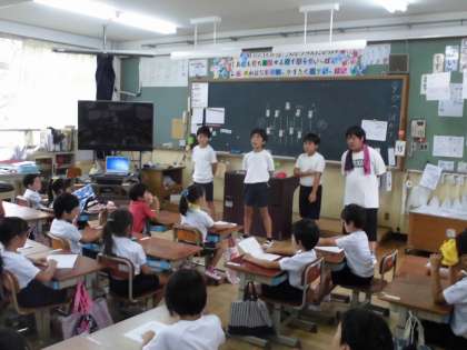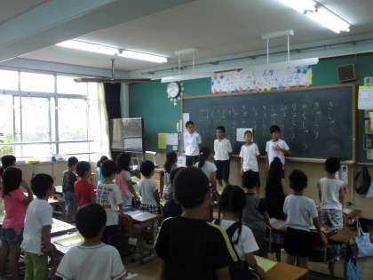 今週に入ってから,応援団は毎朝,1・2年生に応援のエールを教えに行っています。最初は小さかった声も木曜日の今日はとても元気な大きな声になってきました。