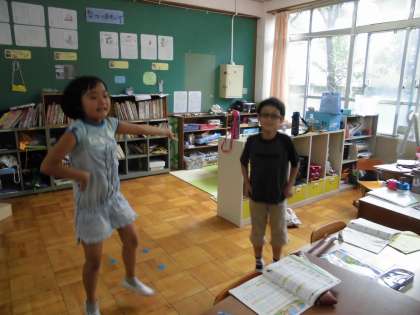 音楽の時間は歌ったり,リコーダーを演奏することはもちろん。音楽にのせて体を楽しく動かし表現しています。今日の音楽の時間も「ゆかいな木きん」でノリノリで体を動かしました。