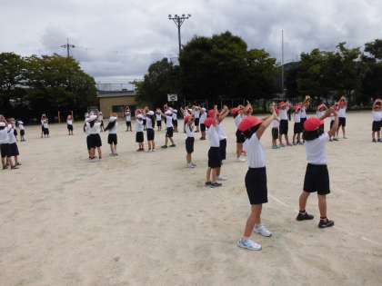 明日の運動会に向けて,今日の体育の練習も頑張りました。かっこよくきまっています。