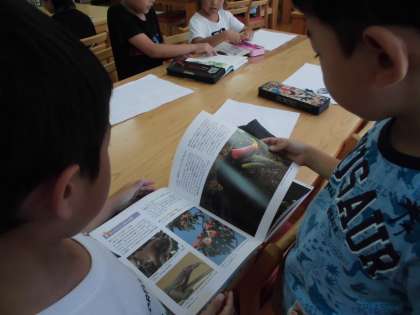 お話の絵のコンクールにむけて,作品を作り始めました。