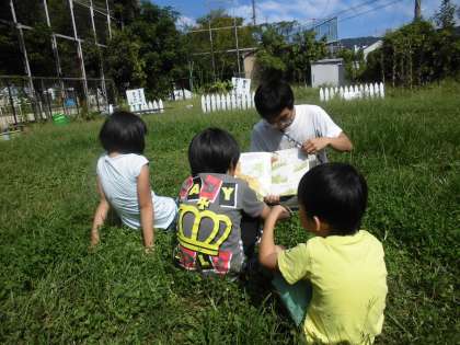 今日の天気は秋晴れ。お日様も出て気持ちいいお天気だったので,国語の時間にワンダフルワールドで昨日山科図書館で借りてきた本の読み聞かせをしました。風も気持ちよく,聞き入っている子どもたちでした。