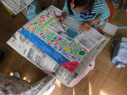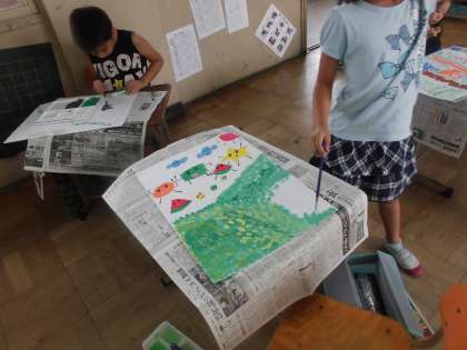 今日の図工は,先週に引き続き「見て見ておはなし」の続きをしました。細かいところはパスで描き,背景や広いところは絵の具で色をつけました。あっという間の2時間でした。