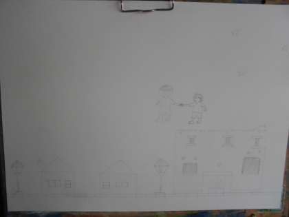 まずは,想像を広げて,下絵。