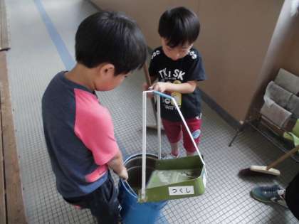 そうじの時間も自分から動く姿がたくさん見られます。今日は協力して廊下の砂をほうきではいていました。