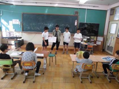 朝の時間に6年生が「ドッチビー大会」のお知らせに来てくれました。