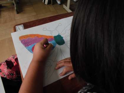 クレパスを混ぜ,指でこすりながら色を付けていきました。