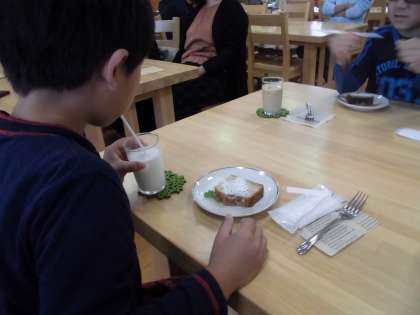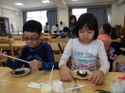 ケーキとドリンクが到着!いただきますをしてみんなで食べました。とっても美味しくて子どもたちもモリモリ,ニコニコで食べていました。