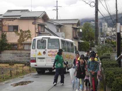 朝方は前も見えないくらいの激しい雨足でしたが,子どもたちの登校を迎えるかのように少しずつ青空が顔を出してきました。