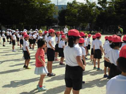 2年生が1年生に声を掛け合って練習していました。