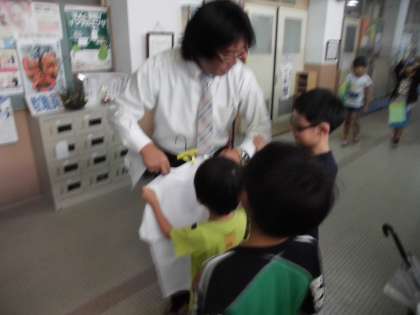 合同運動会も明日に迫りました。運動会にむけてつくったTシャツを校長先生にプレゼントしました。明日来ておられると思うので注目してみてください。