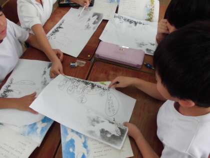 交流した中からいいと思った台詞を教科書に入れて台本をつくりました。