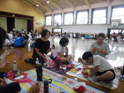 お昼休憩でお弁当。今日はおうちの方と一緒のおひるごはんでみんなニコニコ。力いっぱいで午後にむけてパワー充電しました。