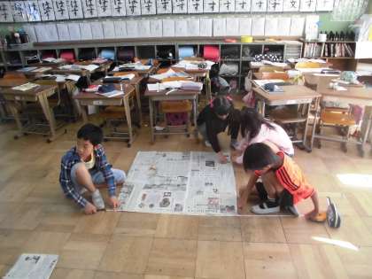 作った1平方メートルをもとに教室や廊下の面積を求めました。