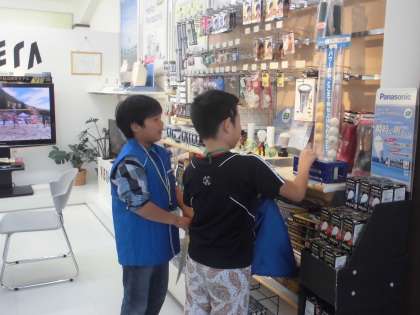 パナソニックでは,3Dテレビの体験ができます。電池ももらえます!