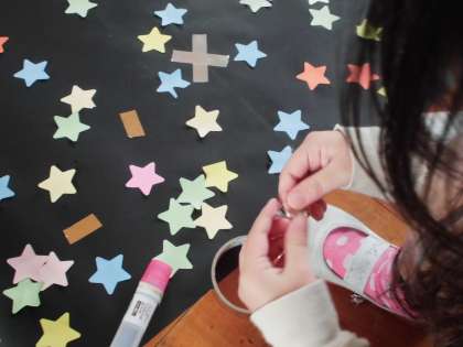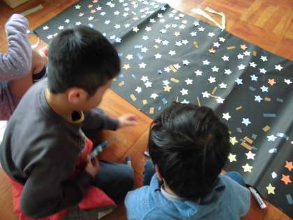 飾りを一つ一つ丁寧に貼ってくれました。