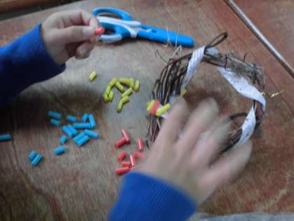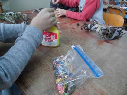 お家から持ってきたものを,工夫して飾っている子もいます。