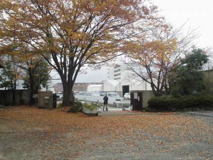 週明け月曜日,西野小学校の校門付近と運動場は落ち葉で埋め尽くされています。