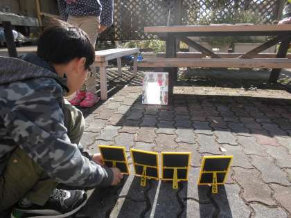 鏡を使って,光の道すじや明るさについて調べました。光の道すじはまっすぐ!!そして,太陽の光をはね返したところは明るくなって不思議・・・!!鏡を多くしてみると・・・。