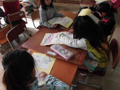 完成した「じどう車くらべカード」を読み合いました。