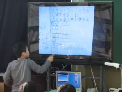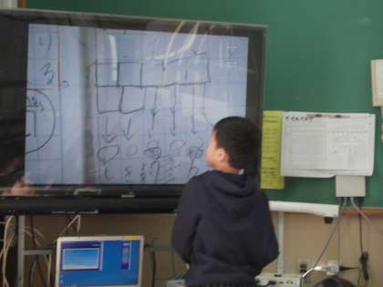 自分の考えを映しながら,お友達に伝えています。