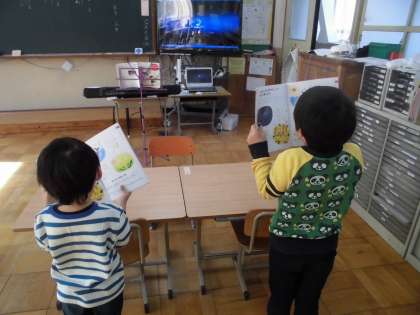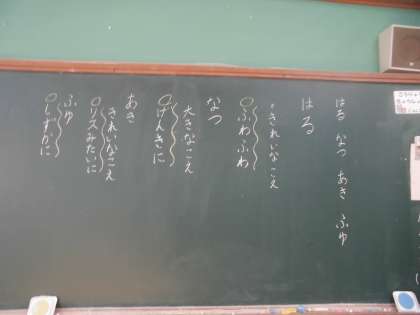 歌詞を見て,「たんぽぽふわりだからふわふわ歌おう。」や「ふゆはさむいから夜の絵だからしずかに歌った方がいいね。」など意見が出て季節に分けて歌い分けることができました。これからも歌詞を見て読んで,音楽を感じてほしいと思います。