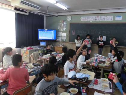 みんなで歌を歌い,牛乳で乾杯をしました。