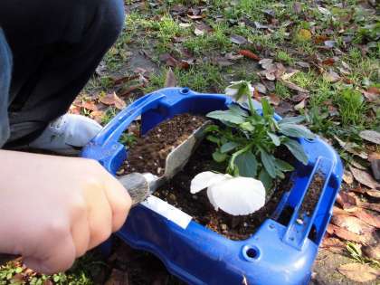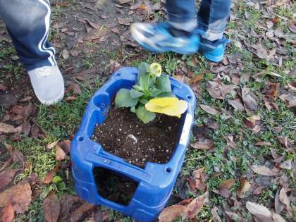土の用意ができたら苗と球根を植えました。「おおきくなあれ」の呪文も唱えてお水もあげて。春にはどんなチューリップに会えるか楽しみにしていました。