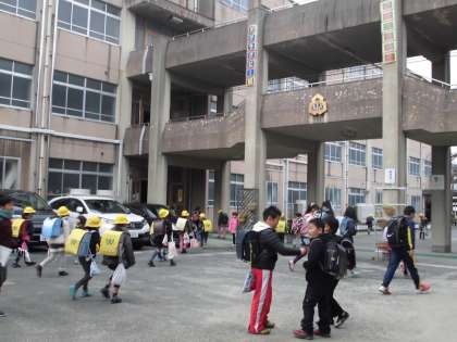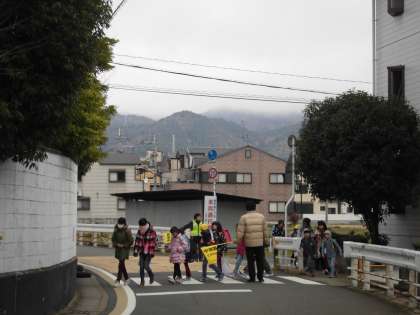寒くても,「おはようございます!」元気に登校する西野の子。