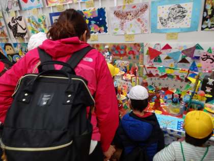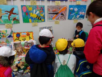会場の2階に上がると,目の前に山科支部の作品たちが!その中にある自分たちの作品たちをしっかりと鑑賞していました。