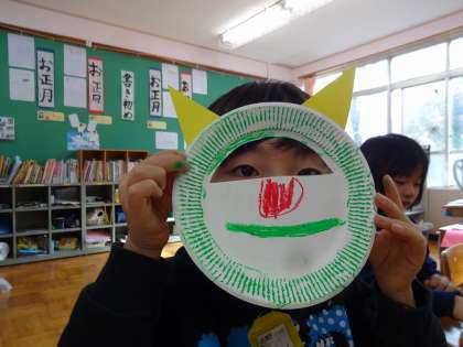 5時間目には一人一人が鬼のお面を作りました。みんなすてきなお面が出来上がりました。