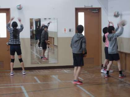 静かな土曜日の学校ですが,体育館では2月18日(土)の「支部交流会」に向けてバレーボール部が練習に励んでいました。