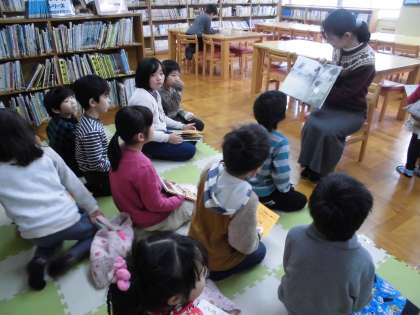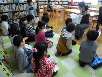 暖かな部屋で,楽しい絵本を読んでいただきみんな大喜び!