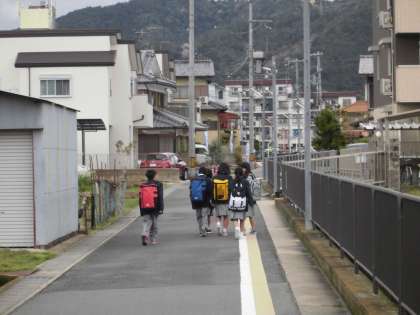 登校指導をしていると3月に卒業した6年生が、やや大きな新しい制服に身を包んで,「行ってきます!」と元気に登校していきました。