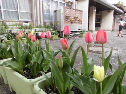 入学式には間に合わなかったチューリップも次々開花してきてます。