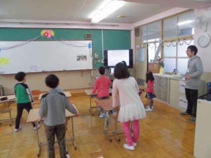 朝の会では,声を出したり,体を動かしたりと頑張っています。