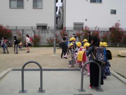 今年から60人近い人数になったので,野色北部を2班に分けて登校しています。