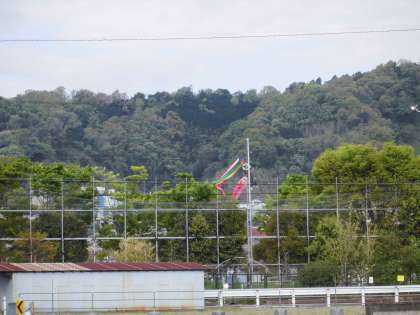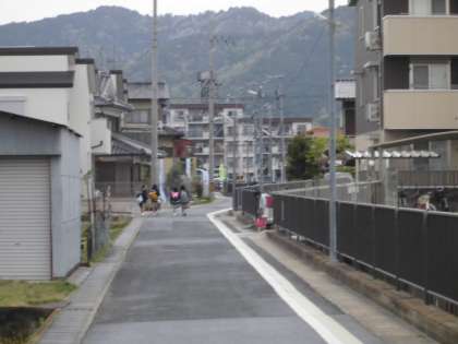 登校する児童とすれ違うように中学校へ登校していく卒業生。気持ち良く泳ぐ鯉のぼり。