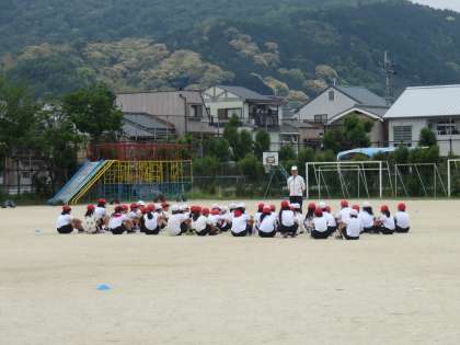 今日は100mのタイムを測りました。チーム分けをして,来週からはいよいよリレーの学習です。
