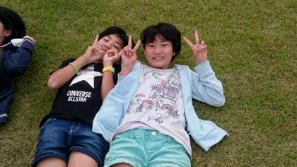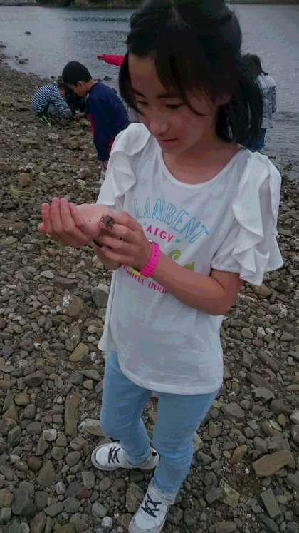 小さな蟹を見つけたり、芝生に寝転んだり、自然の中で楽しく過ごしました。