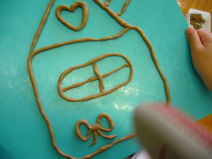 1年の図工で、先週は、粘土遊びをしました。手のひら全体を使って、粘土を細く伸ばします。小さな手のひらでは、なかなか難しいのですが、がんばってニョロニョロを作りました。