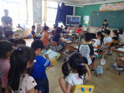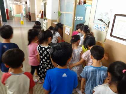 今日は1年生の1組・2組に分かれて校内探検をしました。クラスの授業の様子を見せてもらったり,校長室の中を見せてもらったりと色々な教室を回りました。