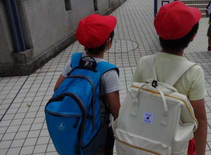楽しい時間はあっという間…。最後までしっかりと1年生を守る2年生。2年生のお兄さん・お姉さんについていく1年生。たくさん動いて疲れたけれど,それぞれ最後までしっかりした足取りで歩いていました。