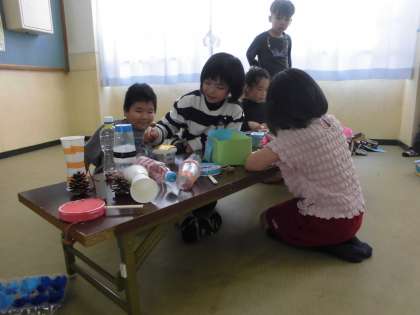 1年生は今日もおもちゃ作りを頑張っていました。学習発表会に向けて、着々と準備を進めています。