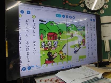 1年生は国語の時間に、絵を見てお話を考える学習をしていました。色々とイメージを膨らませて、楽しいお話がたくさんできました。