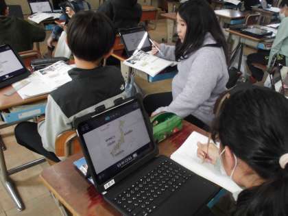 日本の工業生産について学習している5年生。各地の工場が技術力を活かして商品をつくる「地域ブランド」について考えました。日本には、特別な技術をもつ工場がたくさんあることがわかりました。
