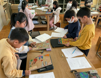 友だちの作品の素敵なところを見つけ合い、褒め合いながら楽しむ姿がたくさん見られました。