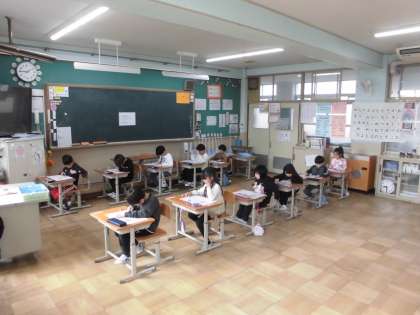 1年生は「たぬきの糸車」の単元テストをしました。これまでの学習を振り返り、落ち着いて問題に取り組みました。しっかりと実力を発揮できたでしょうか?